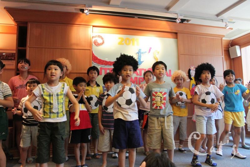 在水容量測量的實驗課程中, 該班學生現場實習如何測量不同形狀的容器內, 一樣的容量呈現出的高度