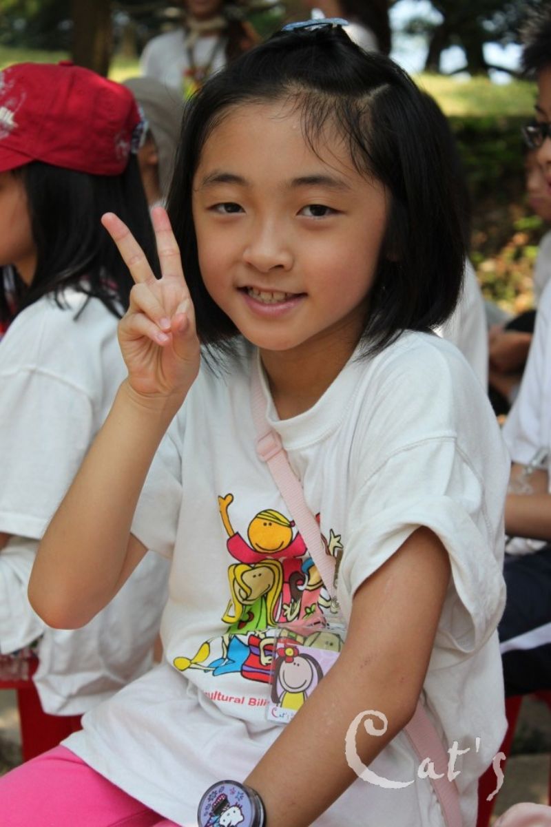 在土壤風乾的實驗課程中, 該位學生高興的跟全班分享自己的冰塊盒內泥土擠壓風乾過的成型