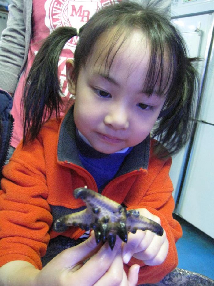 Tiffany很有興趣的觀察和觸摸各種海洋生物